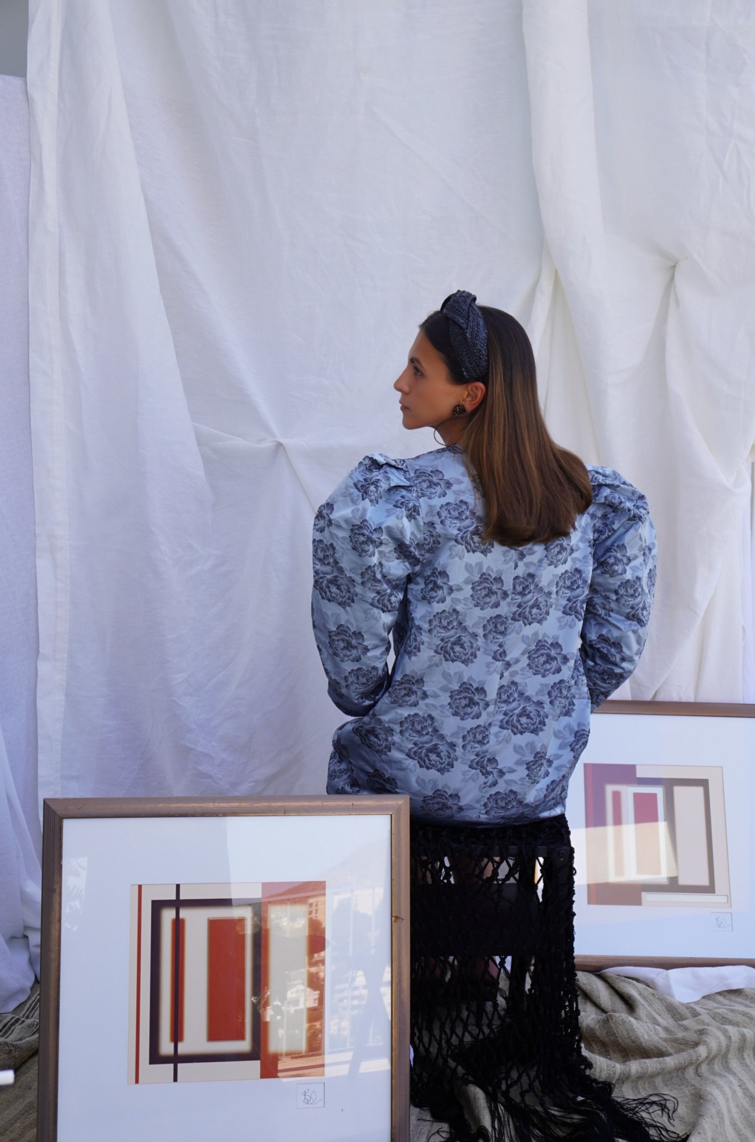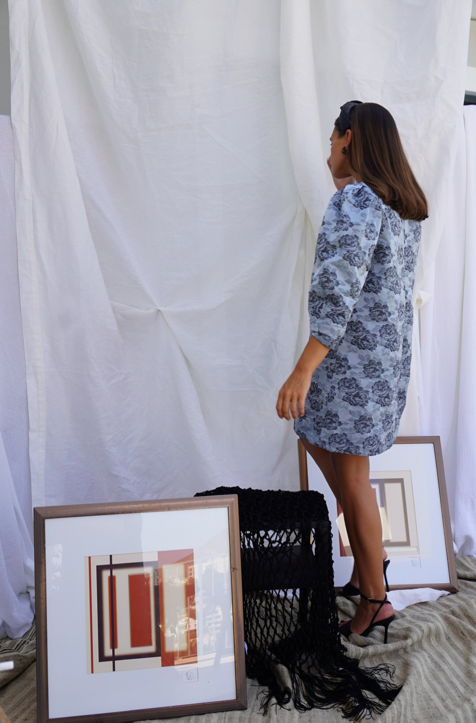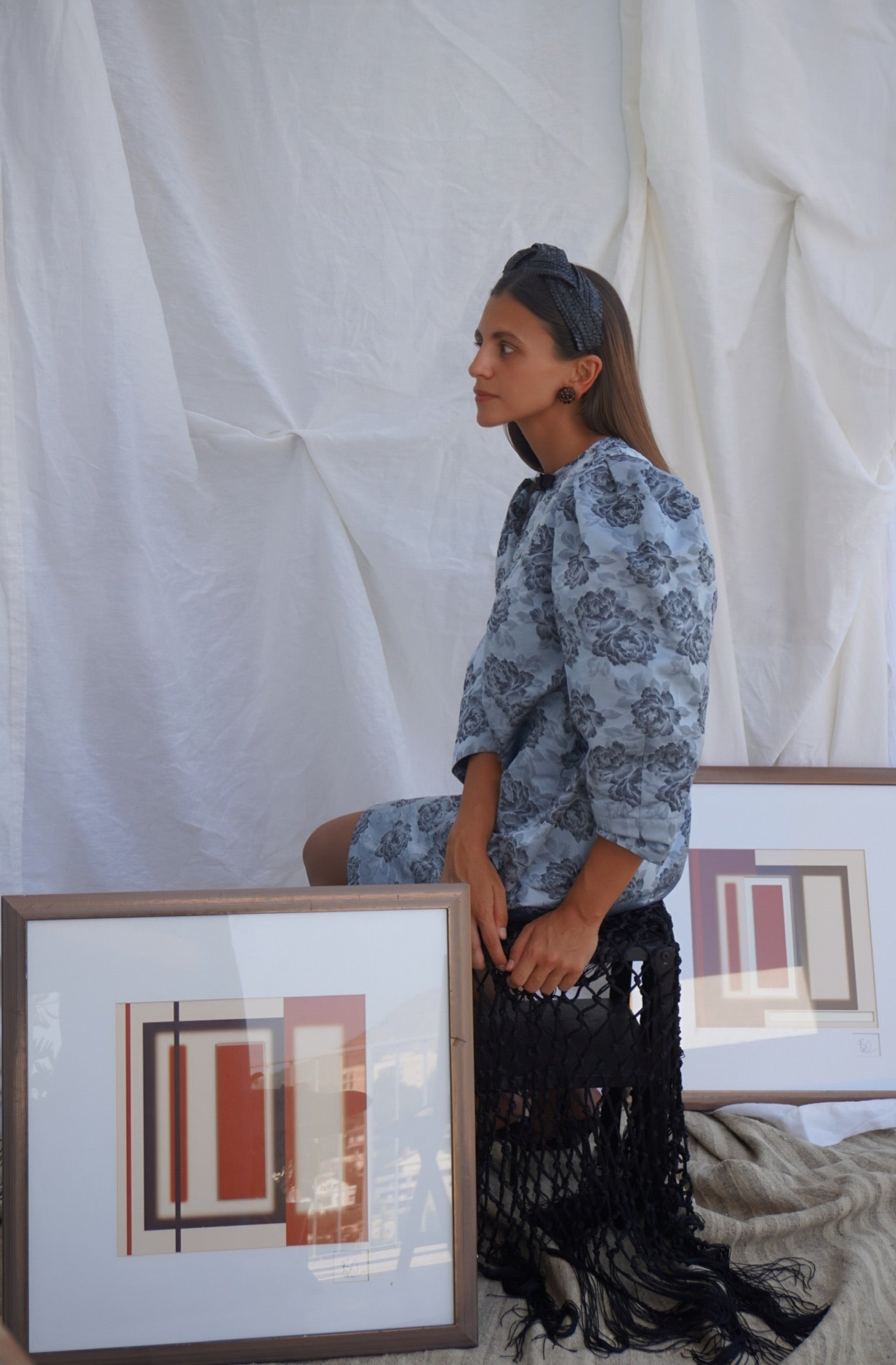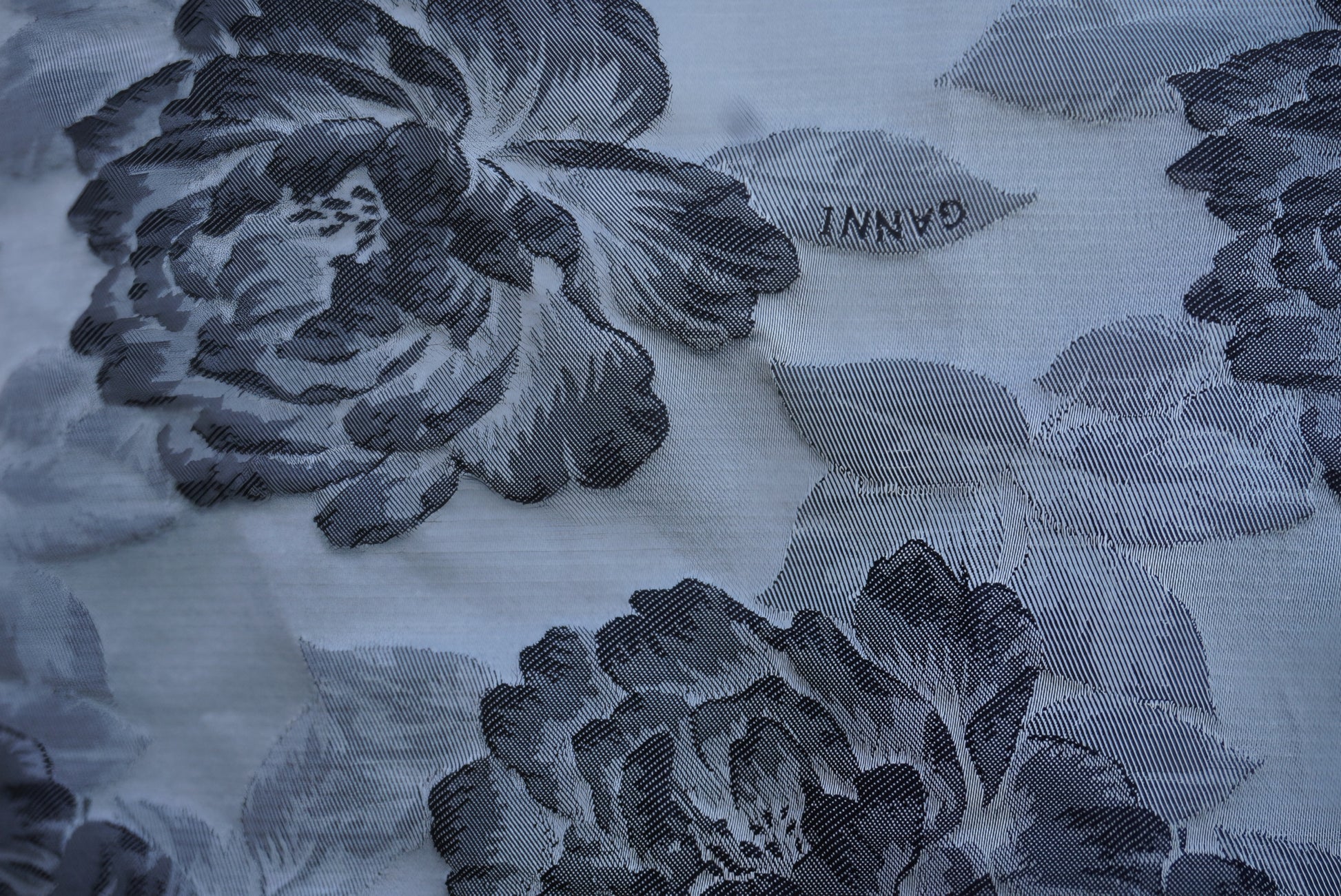 Vestido mini en jacquard floral color azul pizarra con textura plisada. Presenta un diseño estructurado con escote discreto y detalle de lazo en la espalda, acompañado de abertura tipo cut-out que aporta un aire femenino y sofisticado. Incluye cierre trasero con cremallera oculta. Confeccionado en tejido de peso medio, no elástico. Elaborado en una mezcla de 50% poliéster reciclado, 45% poliéster y 5% poliamida.